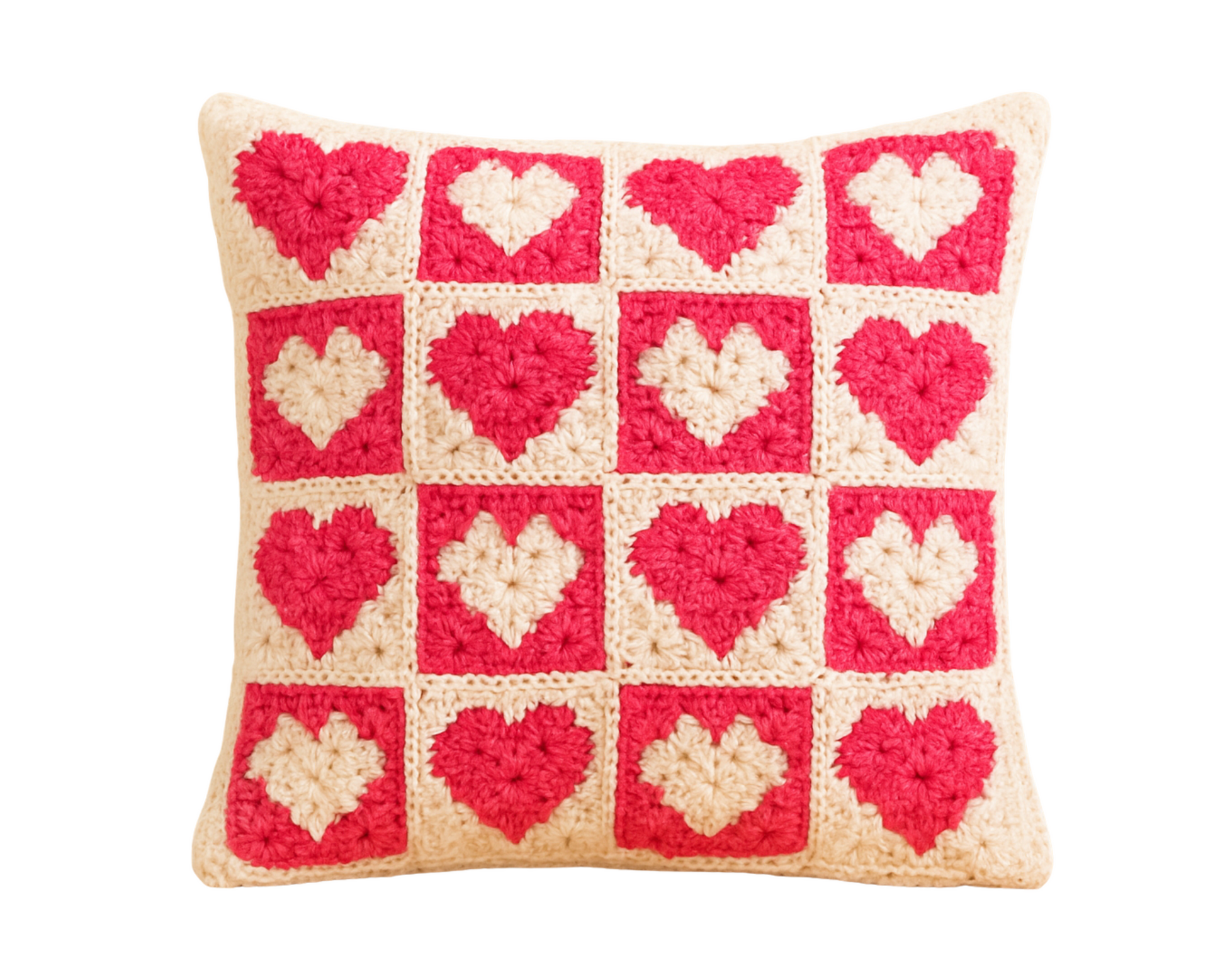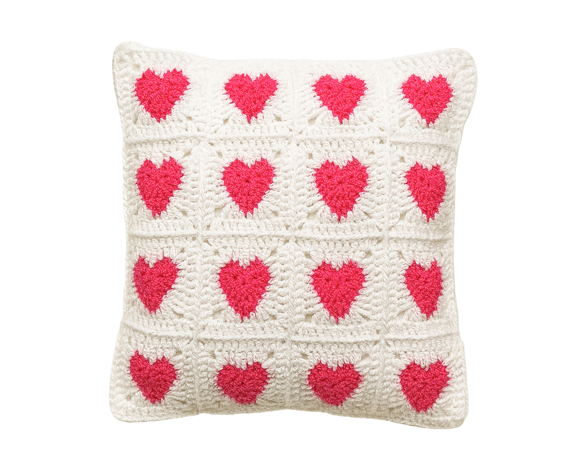 Met dit haakpakket maak je stap voor stap een hartjeskussenhoes. Je haakt granny squares met een hartjesmotief en zet deze samen tot een complete hoes. Het resultaat is een vrolijk woonaccessoire dat in elk interieur past.